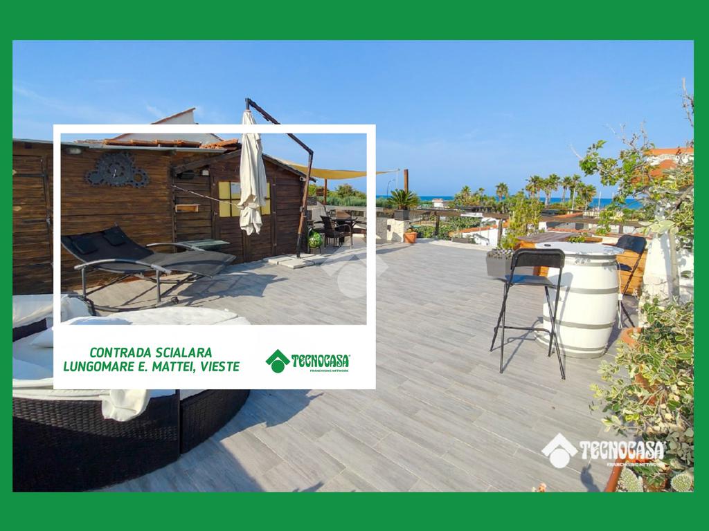 Nel cuore del comune di Vieste, proponiamo in vendita una porzione di bifamiliare situata al piano terra. L'immobile, costruito nel 1967, si estende su una superficie di 104 mq, offrendo ampi spazi esterni ed un splendido terrazzo vista mare.